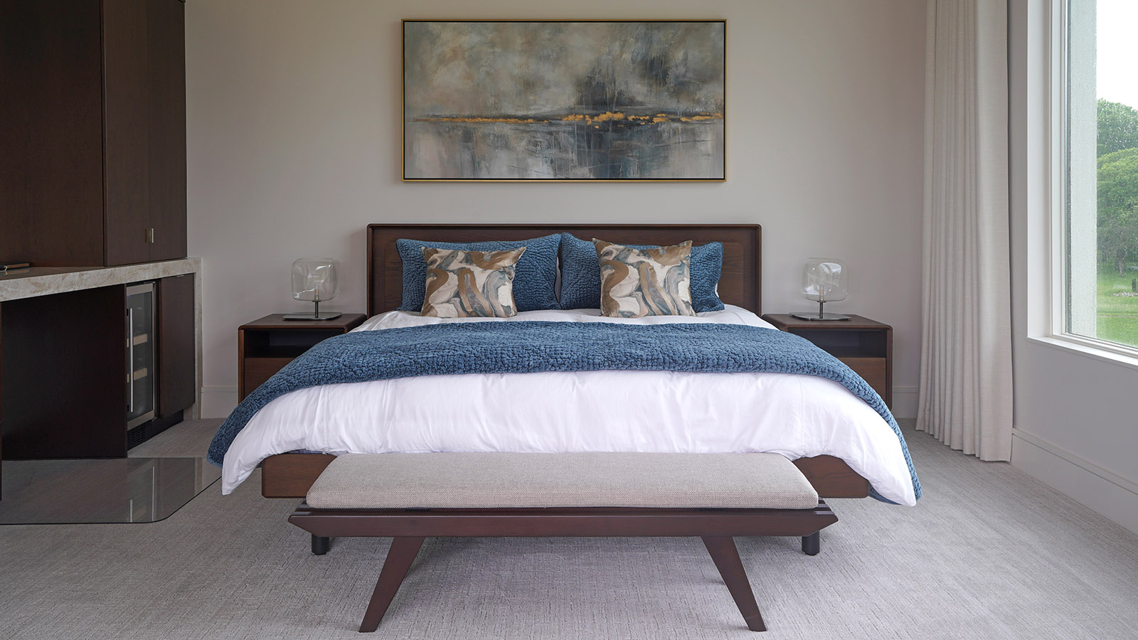 Rather than rushing selections, the project unfolded in multiple phases, allowing time for art, lighting, accessories, and bedding to be chosen intentionally. Each layer was thoughtfully curated to complement the architecture and furnishings, resulting in a home that feels complete, cohesive, and deeply personal.