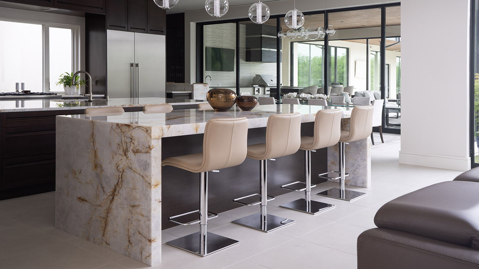 The goal was to create a single-story home that would be easy to navigate as they age, while still offering generous, flexible spaces for entertaining and overnight guests. With only the couple living in the home full-time, thoughtful zoning and long-term functionality guided every design decision. A private casita was incorporated for extended guest stays, giving visitors their own retreat while maintaining the homeowners’ sense of privacy.